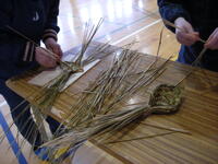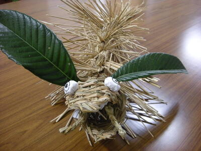 国分小学校では、3年生が社会科の学習の発展として、辻切りの体験学習を行っています。地域の方が辻切りについて説明してくださった後、藁の編み方を実演を交えながら教えくださいました。今年は、子供たちも参加して大蛇を作り、校舎のいろいろな場所に飾りました。