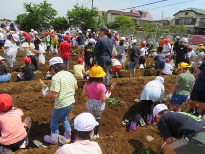 今年度は、サツマイモの苗づくりをしてくださる方や耕運機で畑を耕してくださる方、畝づくりを手伝ってくださる方など、多くの地域の方に助けていただいての苗植えでした。ご協力いただいた皆様、本当にありがとうございました。