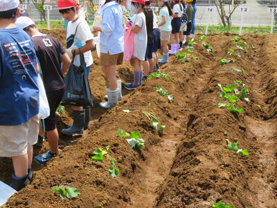 ワクワク活動(縦割り学年交流)でのサツマイモの苗植え