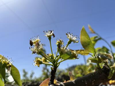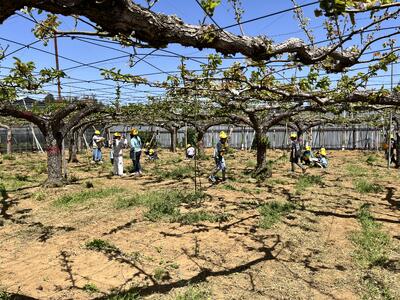 3年生の社会科の学習で梨作りの学習をします。今日は地域の梨園を見学させて頂きました。今年は花が咲くのが遅かったので、交配の様子を見学することが出来ました。質問したり、梨の様子や聞いた話をたくさんメモしたりしていました。これから1年間見学させて頂きます。