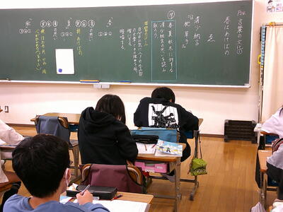 6年生 国語「枕草子」真剣な表情で、春はあけぼの・・・。