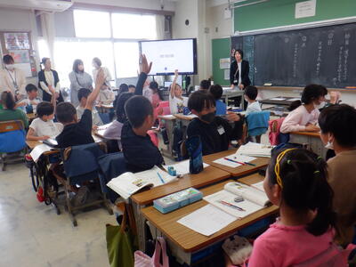 3年生 国語 グループで話し合い、代表者がグループの考えを伝えあっています。
