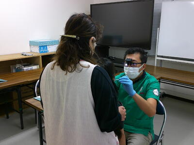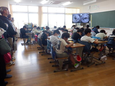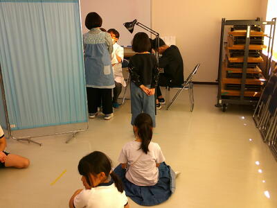 運動会練習や授業の合間に、各学年順番に歯の健康状態を見ていただきました。