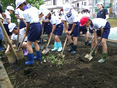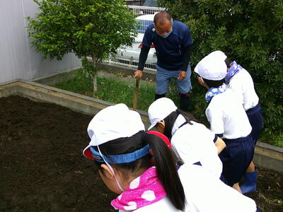 ゲストティーチャーの上妻先生に植え方を教わり、水の管理が大切だということも教わりました。