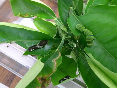 3年生の廊下には、2種類のアゲハチョウの幼虫がいます。元国分小の先生、鈴木先生からいただきました。