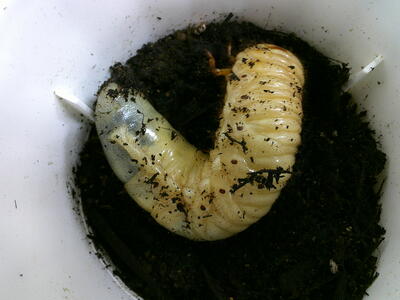 大町小学校からカブトムシの幼虫をいただきました。