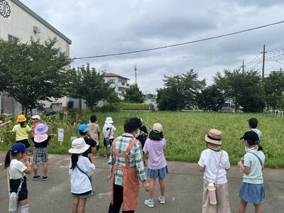 8月22日(木)少しだけ暑さが和らぎ、保育クラブの子供たちは、外に出てシャボン玉を飛ばしていました。