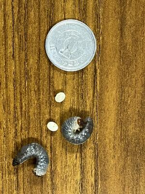 カブトムシは卵を産んでいました。小さな幼虫もいます。