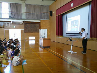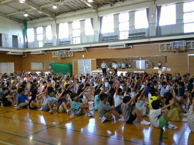 子供たちの元気いっぱいのあいさつが、体育館に響いていました。