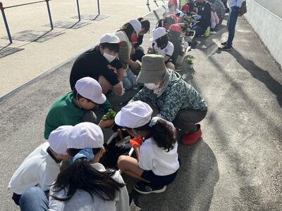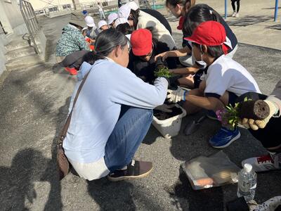 11月28日(木)1年生が菜の花の苗を植えました。