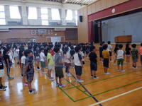 6月18日に全校児童が体育館に集まり、朝会を行いました。