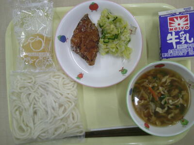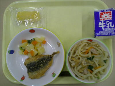 鳥南蛮うどん イワシの竜田揚げ マセドアンサラダ 冷凍パイン 牛乳