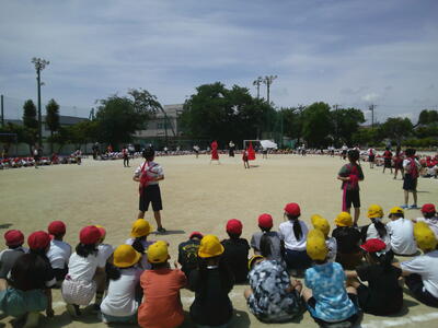 今日は、5年生が「JFAこころのプロジェクト 夢の教室」を行いました。夢の教室は、様々な競技の選手/OB/OGなどが「夢先生」として「夢を持つことや、その夢に向かって努力することの大切さ」「仲間と協力することの大切さ」などを実感してもらいます。夢の教室は【ゲームの時間】【トークの時間】の2部で構成されています。
