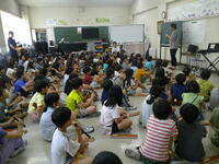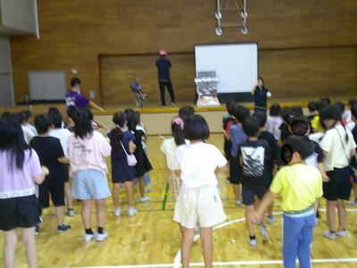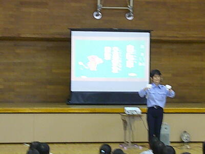 今日4年生は、落語家の方をお招きし、本物の落語を味わいました。最初は、なぜか緊張気味の4年生も、軽妙な語り口と絶妙な技にだんだんと笑いが起こるようになってきました。「小噺にトライ!」ではじゃんけんに勝ったクラスの代表が小噺を披露しました。「ウルトラさん、年齢は?」「じゅはっち(十八)!」おあとがよろしいようで~。