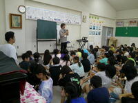 今日は、4年生が市川市清掃事業課の方に、市川市のごみ事情についてお話をしていただき、環境への興味関心を高めました。市川市には最終処分場がないため、他県に頼っています。ごみの減量は切実な問題であることがよくわかりました。ごみを減らすためにどんなことができるか考えたことを、学校で、家で、地域で実行していきましょう。