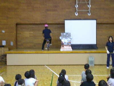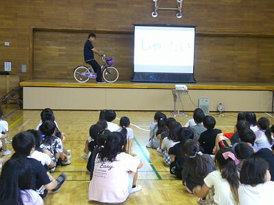 今日は、市川市交通委計画課の方にお越しいただき、1年生と3年生が交通安全教室を実施しました。1年生は「安全な歩き方」、3年生は、「安全な自転車の乗り方」について教わりました。歩いているときは、「信号が青でも、右・左・右をしっかり確認」自転車は「車の仲間」を忘れずに、安全に生活していきましょう。