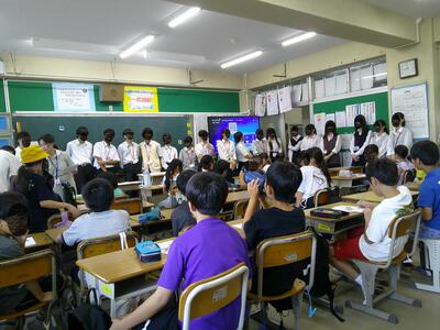 今日は、なわとびプロ 黒野寛馬氏と、元ラグビー選手 西山淳哉氏が夢先生として来校しました。ゲームの時間には、クラス全員が一致団結し、目標を達成することを実感し、トークの時間には、夢先生の経験からおぼろげながら自分の夢について考えることができました。まだまだ夢は変わっていくことでしょう。大小さまざまな夢をたくさん持って過ごしていってくださいね。ユメセンスタッフの皆様ありがとうございました。