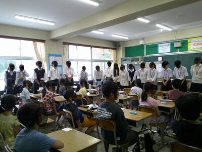 今日は、国府台高校書道部の皆様を講師に迎え(何と20名も来ていただきました!)、6年生が書初めの練習を行いました。(国府台高校には、夏休みの寺子屋でもお世話になっています。)