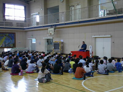 今日は、なわとびプロ 黒野寛馬氏と、元ラグビー選手 西山淳哉氏が夢先生として来校しました。ゲームの時間には、クラス全員が一致団結し、目標を達成することを実感し、トークの時間には、夢先生の経験からおぼろげながら自分の夢について考えることができました。まだまだ夢は変わっていくことでしょう。大小さまざまな夢をたくさん持って過ごしていってくださいね。ユメセンスタッフの皆様ありがとうございました。
