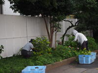 夏の太陽をたくさん浴びた花壇の整理を、行いました。
