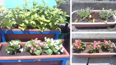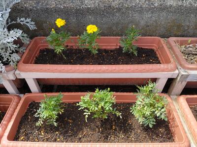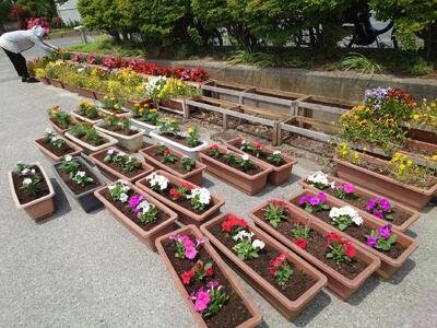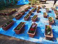 市川市花と緑のまちづくり財団様から頂いた花の苗を、新しいプランターに植えました。