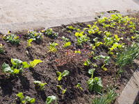数日前より気温が上がってきたためか、菜の花も開花を始めました。草丈が低いのでボリュームに欠けますが、花柄摘みの成果もありわき芽がたくさん出ているので、卒業式のころには花壇いっぱいに菜の花が咲くことでしょう。