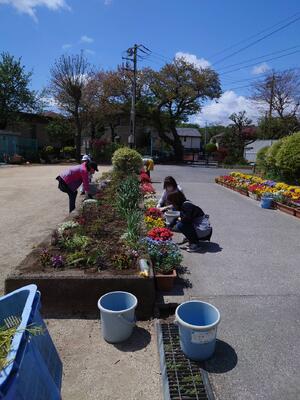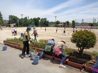 活動中、運動会の練習をしている子供たちの姿に元気をもらいながら、花の手入れなども気持ちよく行うことができました。