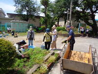 16日(木)、花ボランティアさんたちによる活動が行われました。梅雨の晴れ間を縫っての活動とあってか、たくさんのボランティアさんが集まってくださいました。 用務員の福池さんとリーダーの福間さんを中心に、除草作業からスタート。業間休みになると、校庭に遊びに来た子供たちもボランティアさんの手伝いをしてくれたので、作業がはかどりました。コスモスの花壇もフェンス沿いのアジサイの周りもすっかりきれいに!学校に来る機会がありましたら、ぜひ、ご覧ください。