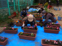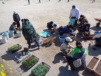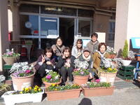 さらに、プランターにも苗を植えていただきました。3月、花道を作って卒業生を見送ろうという計画だそうです。春、どんな花が咲くのか想像しながら植えていくのも楽しいですね。