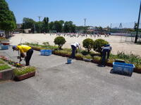 蝉の声が響き、夏の気配感じる7月3日(水)に、第3回の花ボランティア活動が行われました。花壇の草取りや花の苗の植え替えなど、国府台小がまた一段と華やかになりました。