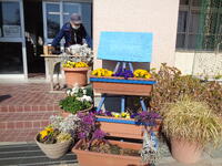 11月4日、花ボランティアさんの活動がありました。月に一度の割合で行われている花ボラ活動、用務員の福池さんと共にアジサイやバラの手入れをしたり、花壇を整備したり、花の種や球根を植えたりしています。今回は、花の寄せ植えをしていただきました。色合いやレイアウトもプロ級!おかげさまで職員玄関入り口が華やかになりました。
