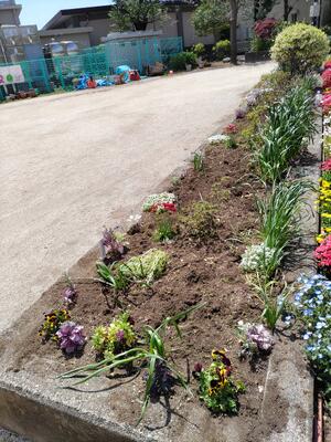 きれいになった花壇は、今度の運動会の日にぜひご覧になってください。
