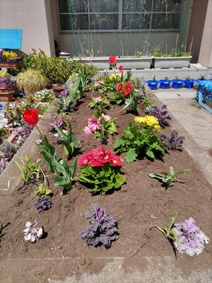 色とりどりの花が、国府台小学校をさらに明るくしました。