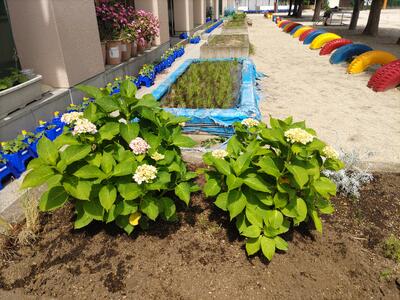 校庭からデイサービス門に向かう斜面にアジサイを植える予定となっています。暑い時期ですが、木陰での作業になりますので、もしよろしければ虫よけ持参のうえご参加ください。お待ちしております。