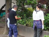 夏には夏の剪定の仕方があるとのことで、秋にきれいなバラが咲くようにみんなで剪定を行いました。先生方から、知らなかったことをたくさんご指導いただきました。