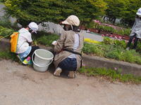先週から、学習の一環として草花の世話を始めた5組の子供たちも、一緒に活動しました。
