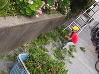 梅雨前の日差しを浴びて、大きくなった雑草を取り除き、