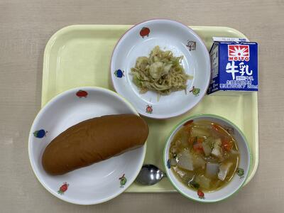 カブと白菜のスープ かぼちゃケーキ 牛乳 です。