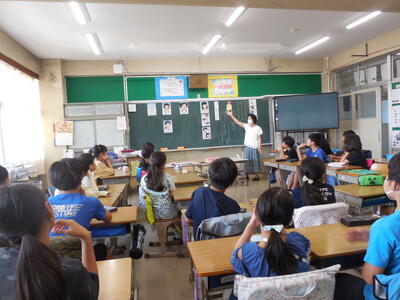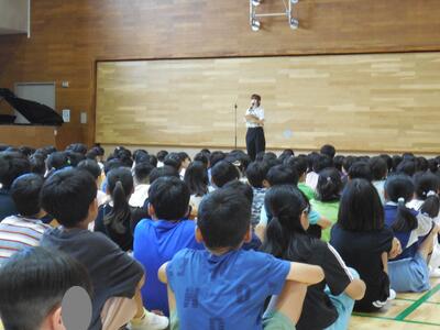 夏休みが終わり、新学期が始まりました。9月とは思えない暑さです…。しかし、先日お知らせした体育館のエアコンが稼働できることになり、全校のみんなへのお披露目もかねて、始業式を体育館で行いました。子どもたちは体育館に足を踏み入れるとみんな一様に「すずしい~」と声を上げていました。始業式は、校歌、校長先生の話(しっかりと目標をもって生活していきましょう)、生活目標についての話(よい姿勢で話を聞き、落ち着いて学習しよう)がありました。夏休み明け初日でしたが、みんな姿勢よく、しっかりと話を聞いていました。(エアコン効果でしょうか( ̄▽ ̄))明日からもがんばりましょうね。
