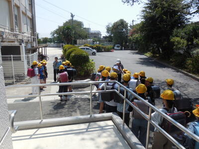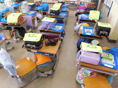 地震発生への一時避難→警戒宣言等が出された時の引き渡しを想定しての訓練を行いました。暑い中、子どもたちを引き取りに来てくださり、ありがとうございました。今日は訓練のため、引き取りの都合がつかなかった児童は教員が途中まで引率しての集団下校となりましたが、いざという時はお迎えの方が来るまでお預かりすることとなります。お迎えに来る方につきましては、今一度ご検討をお願いいたします。
