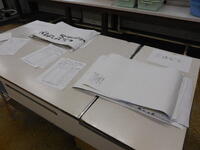 夏休みにチャレンジした作品が集められました。コンクールごとに分けられています。どのコンクールも、たくさんの作品があります。結果が送られてくるのが楽しみです。