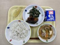 キムチ入り味噌汁 グレープフルーツ 牛乳 です。