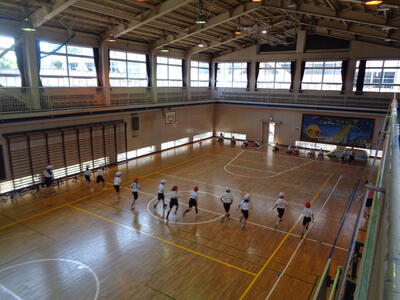 写真は「シャトルラン」の様子です。体力テストの1つで、持久力を測定するものです。