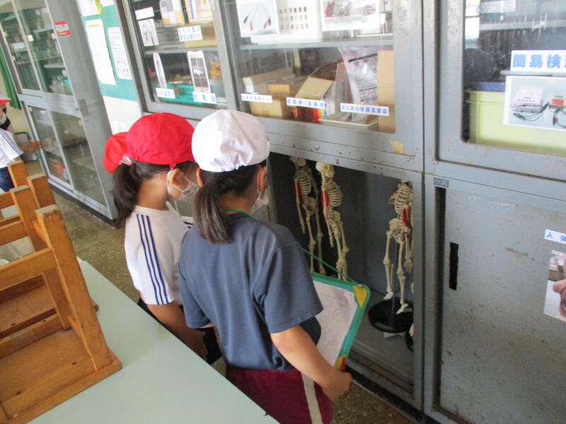 「ガイコツはどこにあるんだろう。」「地下に行きたい!」1年生からの質問にも優しく答えてくれる2年生の様子が見られました。