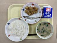 ごはん シシャモ ジャガイモのごまみそ和え 飛鳥汁 牛乳 です。