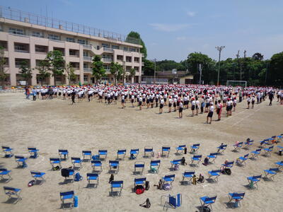 応援団の練習では、子供たちの力強い手拍子が運動場いっぱいに響き渡っていました。