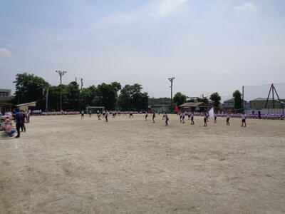 月、火とすっきりしない肌寒い日が続きましたが、子供たちの運動会への熱い思いが太陽にも伝わったのか、今日は朝からいい天気。全校児童が集まっての全体練習を行いました。