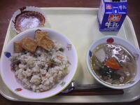 当日は、就学時健康診断でした。それに伴い、給食時間がいつもより50分早く、また、下校時間も早かったため、簡単に配膳ができるメニューでした。外はカリッと、中はふわっとしたあげパンが大好評でした。
