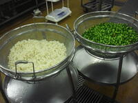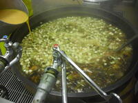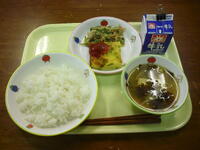 きくらげとたまごのスープは、ふわふわ卵がのど越しをよくしました。コリコリしたきくらげもアクセントになっていておいしかったです。スープもおかわりした児童が「おいしかった!」と教えてくれました。溶き卵は、約9キロ使用しました。食缶に溶き卵を入れて、沸騰したスープにゆっくり入れていきます。