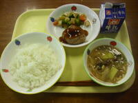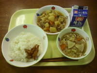 肉じゃがは、今日の一番人気メニューでした。給食でどれがおいしかったか聞いてみると「肉じゃが!」と答える児童が多かったです。具沢山で食べ応えがありました。